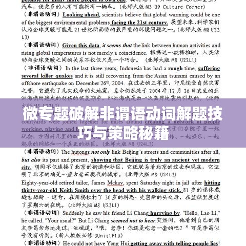 非谓语动词是英语语法中的重要组成部分,也是各类英语考试中的热点和难点,尤其在解题过程中,非谓语动词的使用更是关键,本文将围绕“微专题非谓语动词解题”展开讨论,帮助读者更好地理解和掌握非谓语动词的用法,提高解题能力。