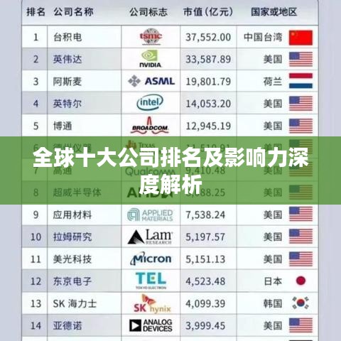 在全球经济高速发展的今天,各大公司的实力和影响力日益显现,以下是全球十大公司的排名及其简要分析,它们在不同领域均有着举足轻重的地位。