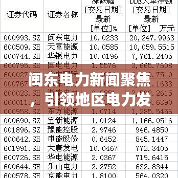 在快速发展的现代社会,电力作为国民经济的基石,其发展趋势与动态备受关注,本文将围绕“闽东电力新闻头条”这一主题,探讨闽东电力发展的最新动态及其对地区经济增长的推动作用。