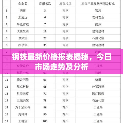 随着全球经济的复苏和基建需求的增长,钢铁行业正迎来新的发展机遇,本文将为您呈现钢铁今日最新价格报表,并简要分析市场动态及未来趋势。