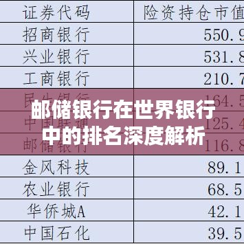 随着全球金融市场的不断发展,各国银行的竞争也日益激烈,中国邮政储蓄银行(简称邮储银行)作为中国的国有大型零售银行,其在世界范围内的地位和影响力逐渐提升,邮储银行在世界银行中的排名是多少呢?本文将就此进行详细的解析。